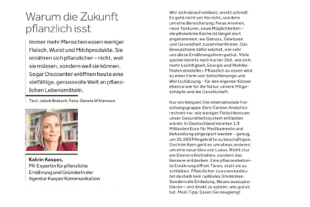 We don’t just put brands into the media – we’re part of it ourselves: as experts on PR and the plant-based lifestyle, in interviews and guest features. We also write our own journalistic articles. Here’s a selection of outlets where Katrin Kasper has published – or appeared.